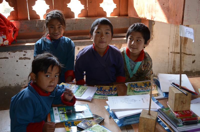Students learn Dzongkha (the national language) as well as English and mathematics.