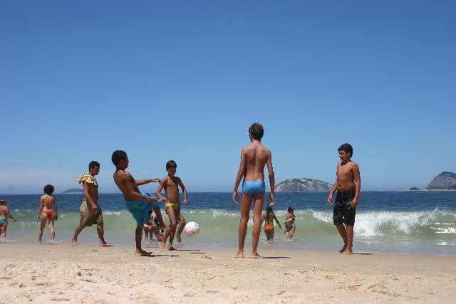 Football (Soccer) is the national sport in Brazil, and it is such a passion! Kids play anywhere they can, including on Ipanema Beach.