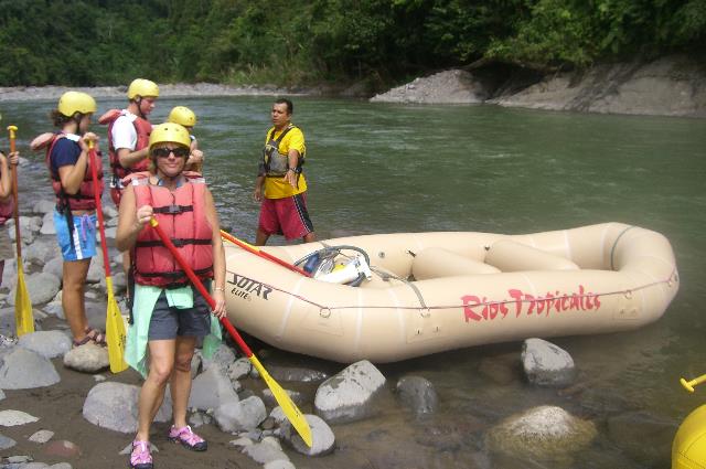 While not her idea, Pam puts on her game face and prepares to conquer the Class III and IV rapids of the Pacuare River on our trip with Rios Tropicales.
