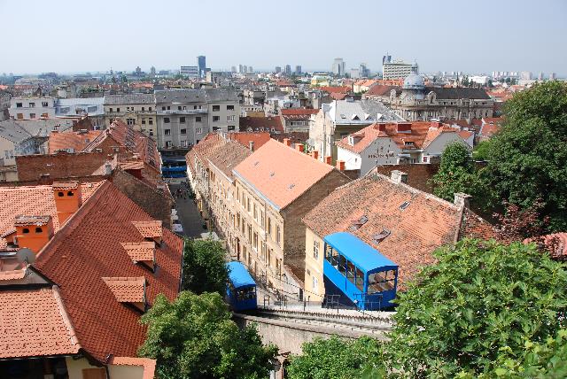 This view is looking down from upper town to lower town as the Uspinjača funicular makes its exchange. Each cabin is capable of carrying 28 passengers.