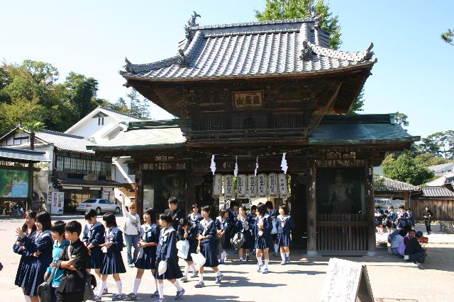 Miyajima is one of the most popular tourist destinations for the Japanese. A total of 3 million people visit the island annually. That is Pam waving on the left behind this group of kids visiting the shrine.