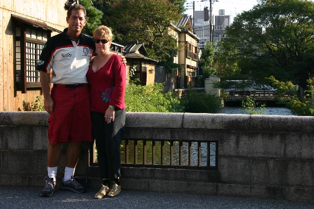 Here we are walking the streets in the Gion District. In the background is the bridge where Sayuri walked in the book "Memoirs of a Geisha".