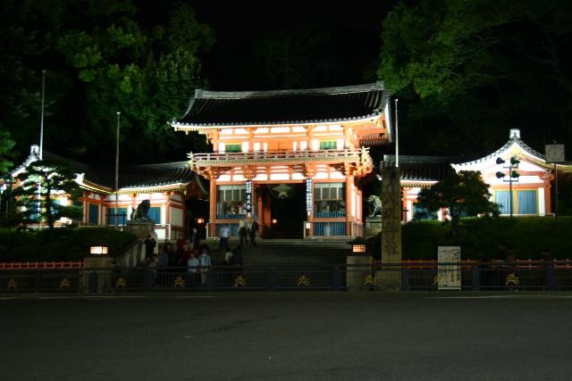 This is the Romon, the main gate of Yasaka Jinja facing Shijo-dori. This is the shrine in Gion that was featured in the book "Memoirs of a Geisha" by Arthur Golden.