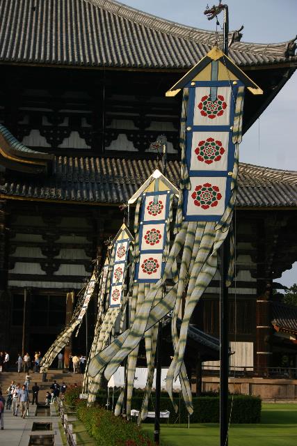 These beautiful banner flags line the path to the entrance of the Daibutsu-den and wave silently in the breeze.