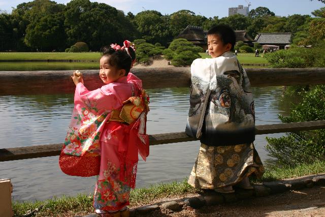 Like a page out of a fairy tale, we came across these Japanese kids feeding the Koi (carp) in the Koraku Garden pond.
