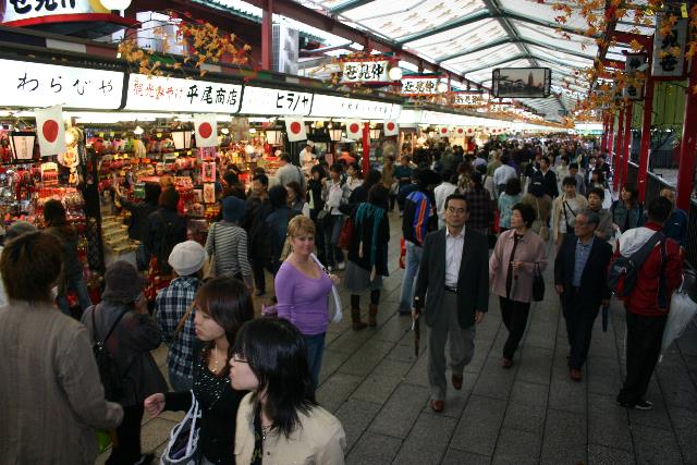 Here's Pam in the center of Nakamise-dori. Note that the entire street is lined with shops on both sides.