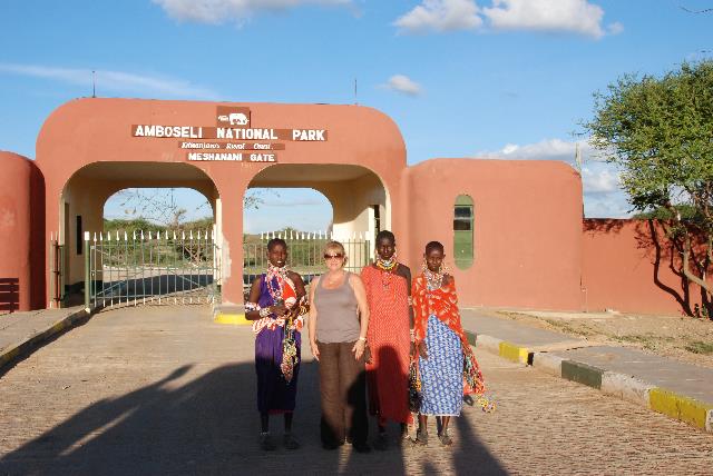 Pam with some local Maasai women selling their wares outside the main gate to Amboseli National Park. This reserve consists of approximately 151 square miles.