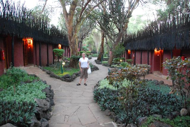 Rooms at the Amboseli Serena Safari Lodge are in single-story buildings reminiscent of the Maasai Manyattas (villages).