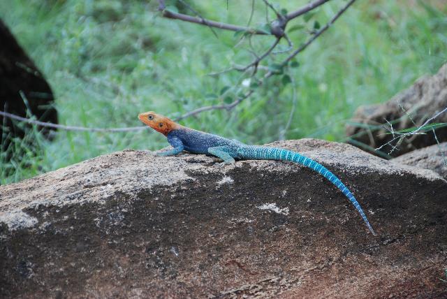 Agama lizards thrive in this area. They are insect-eating, have long tails and are seen in a variety of colors.