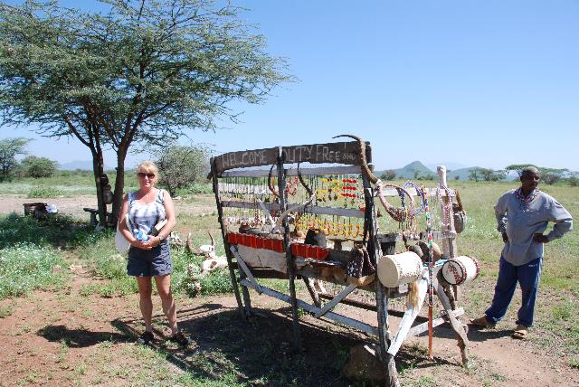 | We found this hilarious - in Samburu, Kenya next to the dirt airstrip, a local set up this lone stand and was selling wares of the local tribes. What's funny? Check out the sign -- it says "Welcome, Duty Free Sho". He ran out of room and couldn't fit 'Shop'! |