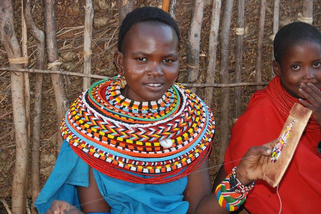 A young Samburu woman was doing some beadwork outside her hut, so we went in for a closer look. This painstaking work is all done by hand.