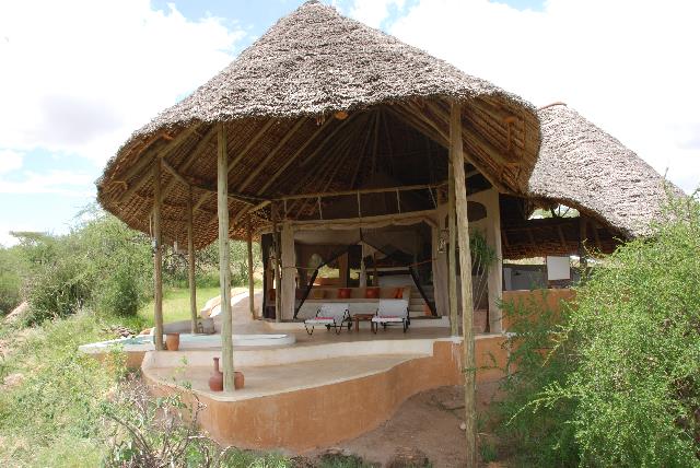 Standing on the hill above the river, looking back at our tent you can appreciate the serious thatched roof which covers not only the tent but also covers the plunge pool and deck.