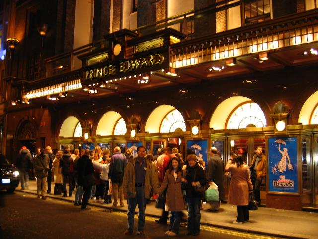 Here we are with Andrea in front of the Prince Edward Theatre in London's West End. We're here tonight to see the musical "Mary Poppins" which turned out to be a real treat! The staging and special effects added to the familiar tunes and lyrics to make the evening very memorable for us. |