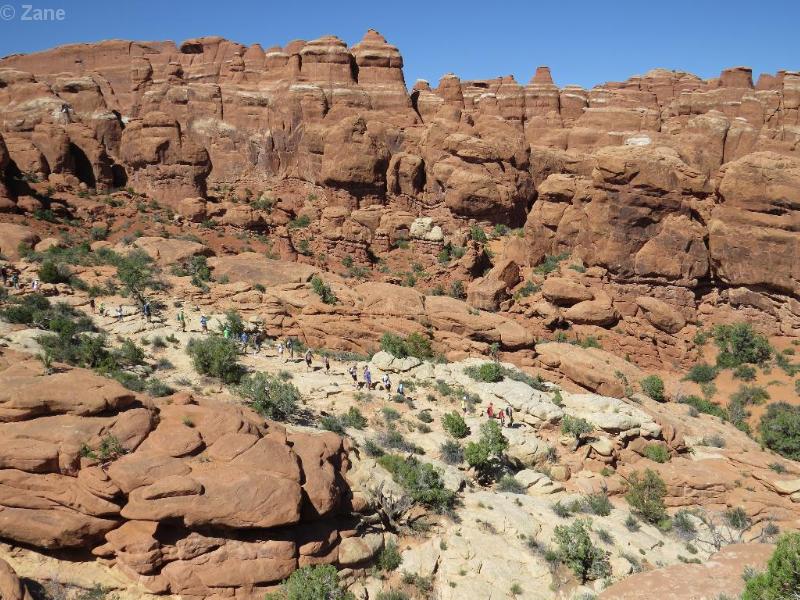 In order to enter the Fiery Furnace, visitors must get a special hiking permit or accompany a ranger-guided tour as these people are doing.