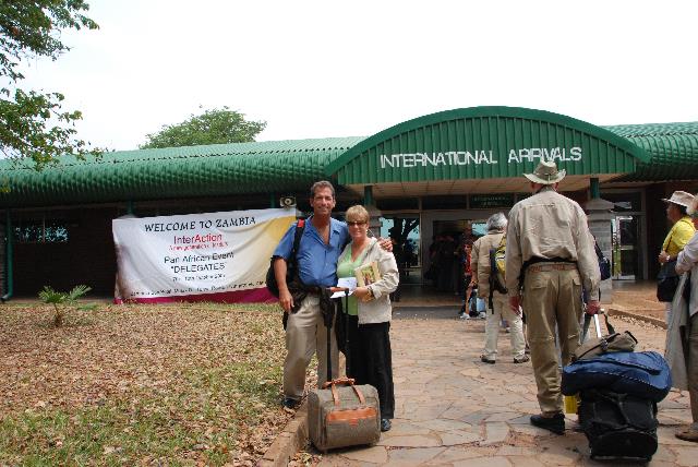 The happy couple arrives at Livingstone International Airport in the Republic of Zambia. This is a very poor country of 12 million people (and estimates are that one million have HIV/AIDS).