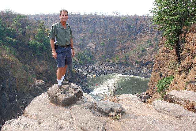 Rafting is a popular thing to to in the Zambezi River Gorge just downstream from Victoria Falls. You can see a few boats in the water behind Randy.
