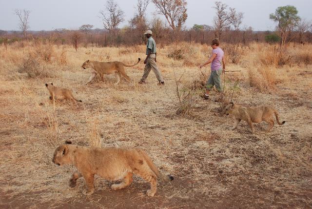 One of our guides showed us that the best thing to do was simply walk along with them (slowly) and not get directly in front of any of the lions, especially the bigger ones. If we didn't threaten them, they wouldn't threaten us. Right??